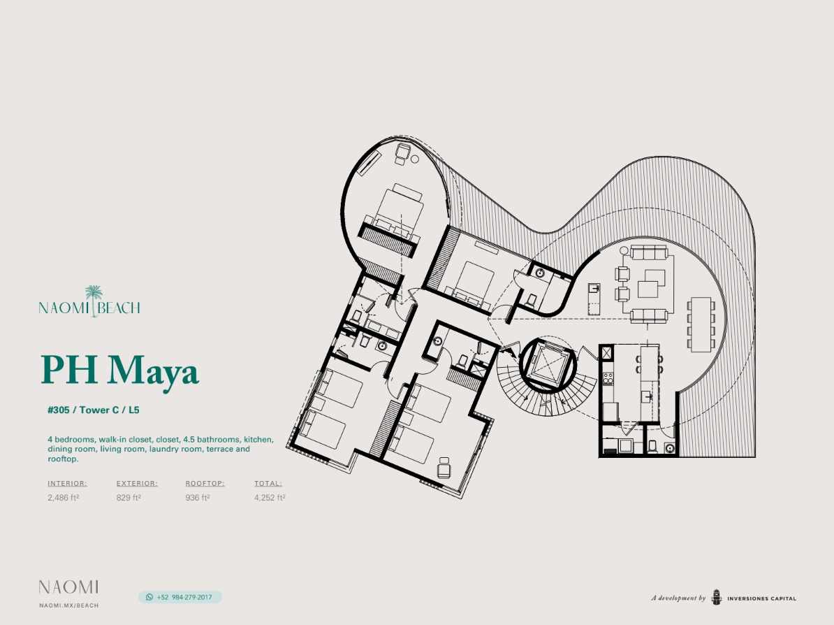 2BR penthouse with private rooftop at Naomi Beach, Playa del Carmen. Boutique beachfront luxury. From $25M MXN / $1.47M USD.