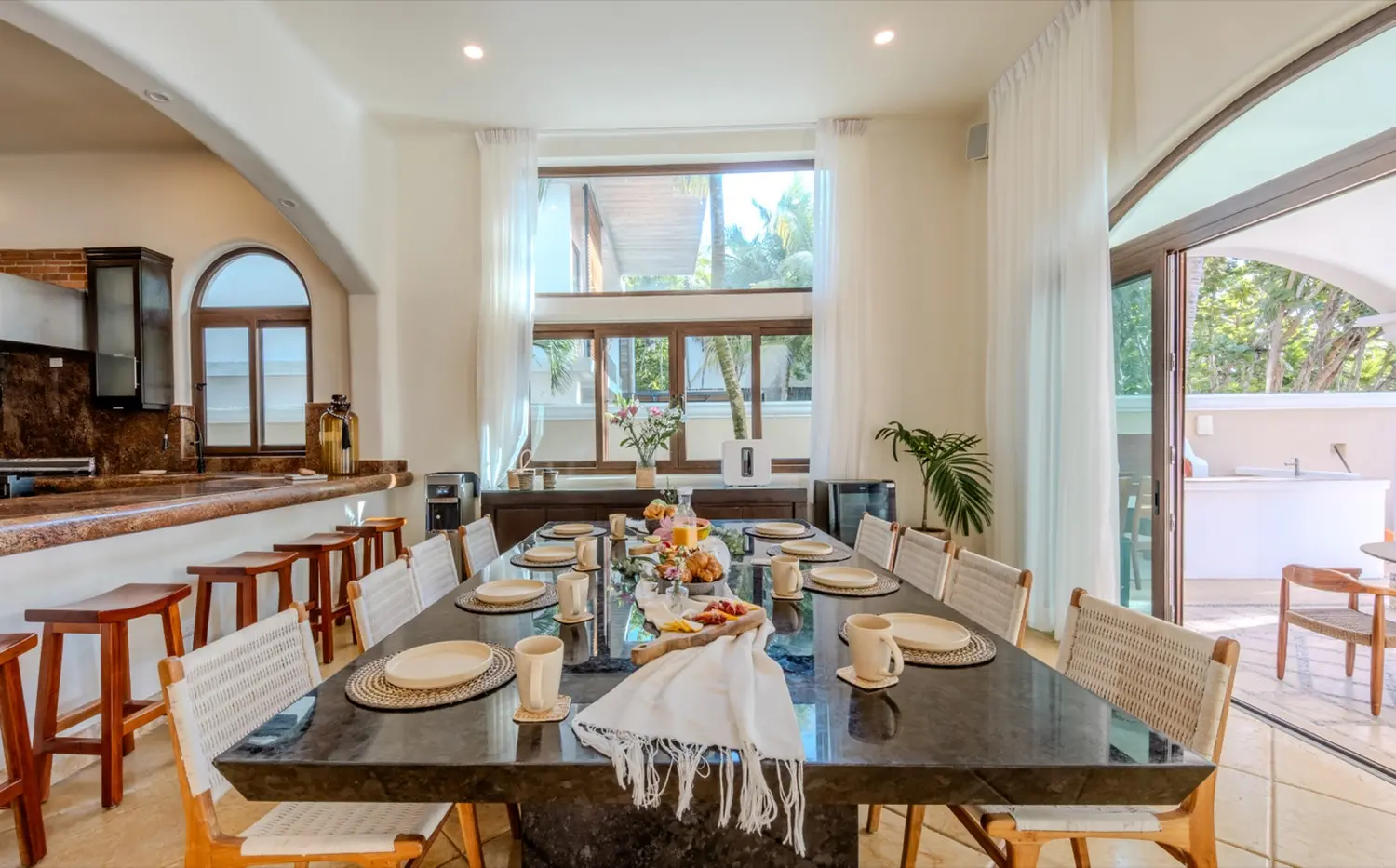 - Fully equipped gourmet kitchen adjacent to outdoor dining terrace